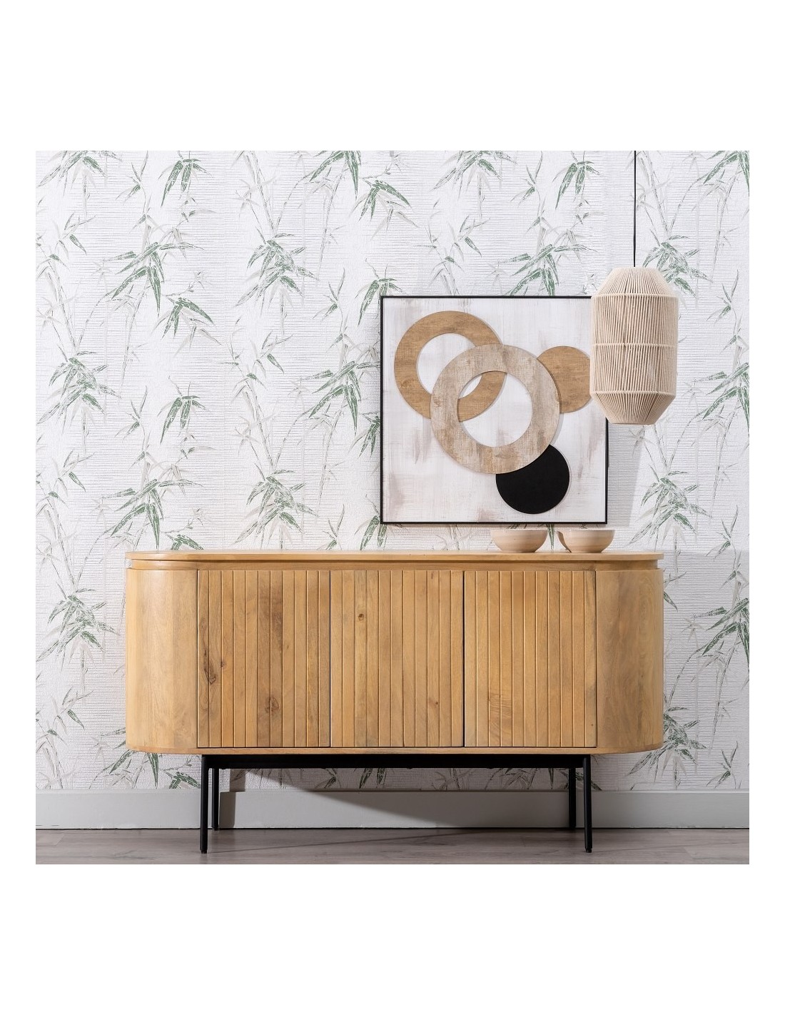 APARADOR NATURAL-NEGRO MADERA-HIERRO 140 X 40 X 75 CM Material: madera de mango, hierro. Puertas: 33x44cm. Altura patas: 25cm.