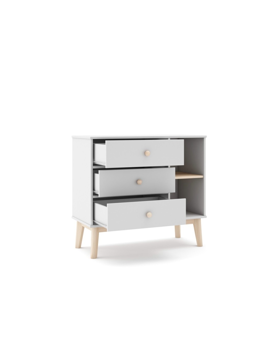 Cómoda 3 cajones 2 huecos ESTEBAN 90 x 80, MDF blanco y pino cera