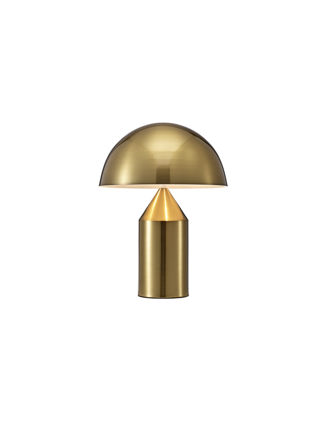 Lámpara de mesa de diseño elegante la famosa lámpara Atollo de Vico Magistretti. Base metal, dorado. Pantalla metálica de color dorado.Una pieza moderna con acabados originales, ideal para iluminar cualquier tipo de espacios y encajar en cualquier tipo de ambiente con estilo.