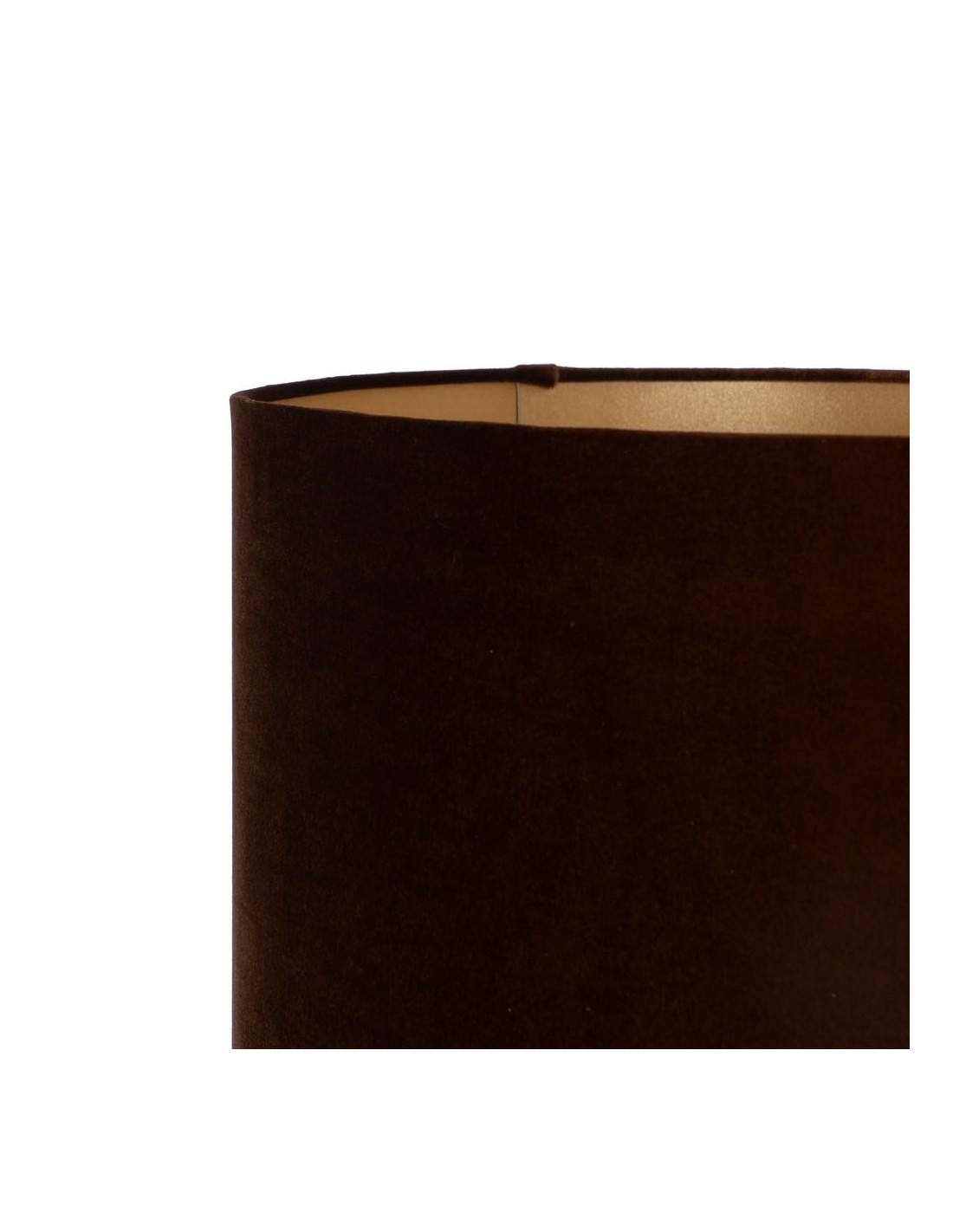 LÁMPARA SUELO MARRÓN-ORO METAL-CRISTAL 43 X 43 X 163 CM Base de cristal, medidas: 25x25x137cm. Tulipa de tejido (100% poliéster) y metal, medidas:43x43x25,4cm. Voltaje: 230V. Casquillo: E27. Bombilla: 1*60W máx (no incluida). Longitud del cable: 210cm.