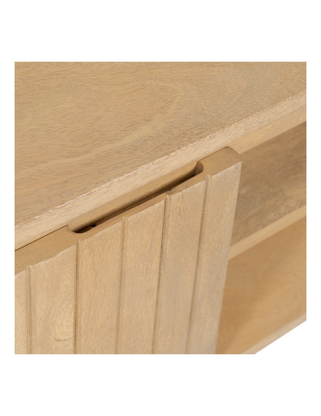 El mueble de TV LICIA es una combinación perfecta de estilo industrial y funcionalidad moderna. Confeccionado con madera de mango de alta calidad y acentuado con detalles metálicos pintados de negro, este mueble destaca por su elegancia y resistencia. Con dos puertas que ofrecen amplio espacio de almacenamiento, el mueble LICIA proporciona una solución práctica para organizar dispositivos electrónicos, películas, libros y otros objetos. Sus dimensiones de 140 x 40 x 48 cm lo convierten en un complemento ideal para cualquier sala de estar o espacio de entretenimiento. Además de su funcionalidad, el diseño industrial de LICIA aporta un toque de modernidad y sofisticación a tu hogar.