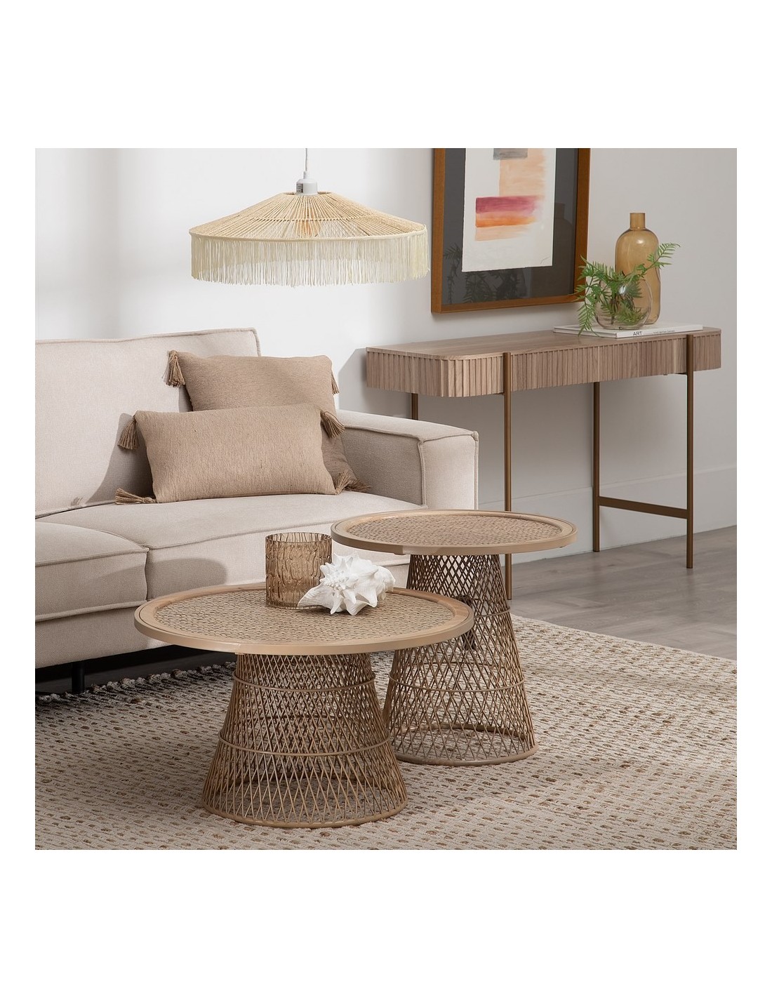 Mesa de centro redonda KOHANA de ratán con metal Ø 70 cm.