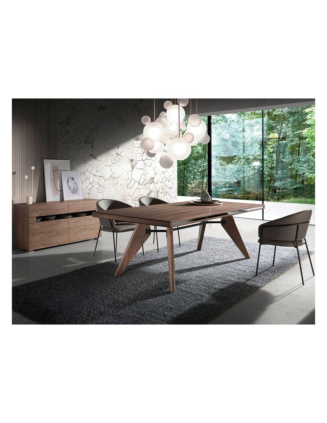 Esta mesa comedor aportará un toque moderno a cualquier tipo de salón o comedor. Con su original tapa de madera de nogal crearás un ambiente cálido, acogedor y repleto de estilo. Versátil y funcional, gracias a su diseño podrás combinarla con las últimas tendencias en decoración. Fabricada con materiales de la más alta calidad, siendo garantía de mobiliario duradero y funcional. La combinación de la madera de nogal, el acero negro y el cristal efecto espejo, ofrece ese aire moderno y actual, eso sí, sin dejar de lado la mayor comodidad y funcionalidad. Su tapa de nogal rectangular de 220 cm. permite una gran capacidad de comensales, así como la sensación de una mayor amplitud.