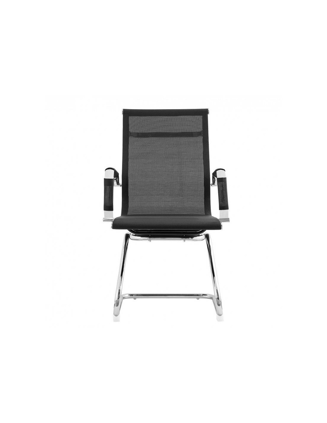 Sillón de diseño para despacho de respaldo medio, fijo con patin. Estructura y brazos cromados con fundas en reposabrazos. Base tubular cromada y tapizado en malla color blanco o negro. Muy bonita y elegante con pinceladas minimalistas. El asiento y el respaldo se adapta suavemente a la forma del cuerpo para asegurar una posición cómoda todo el día.