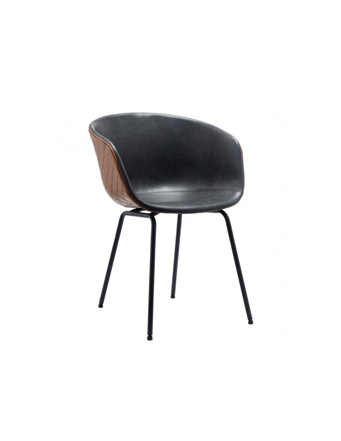 Silla con brazos MARCK, estructura de metal,cuerpo en similpiel combinada marrón/negro.