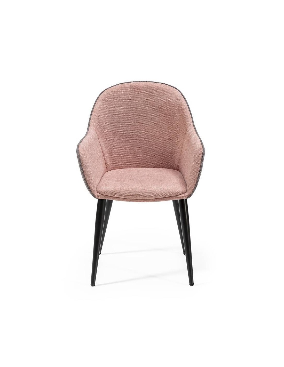 Silla de comedor con brazos ASLAD tejido combinado, patas metálicas en negro.