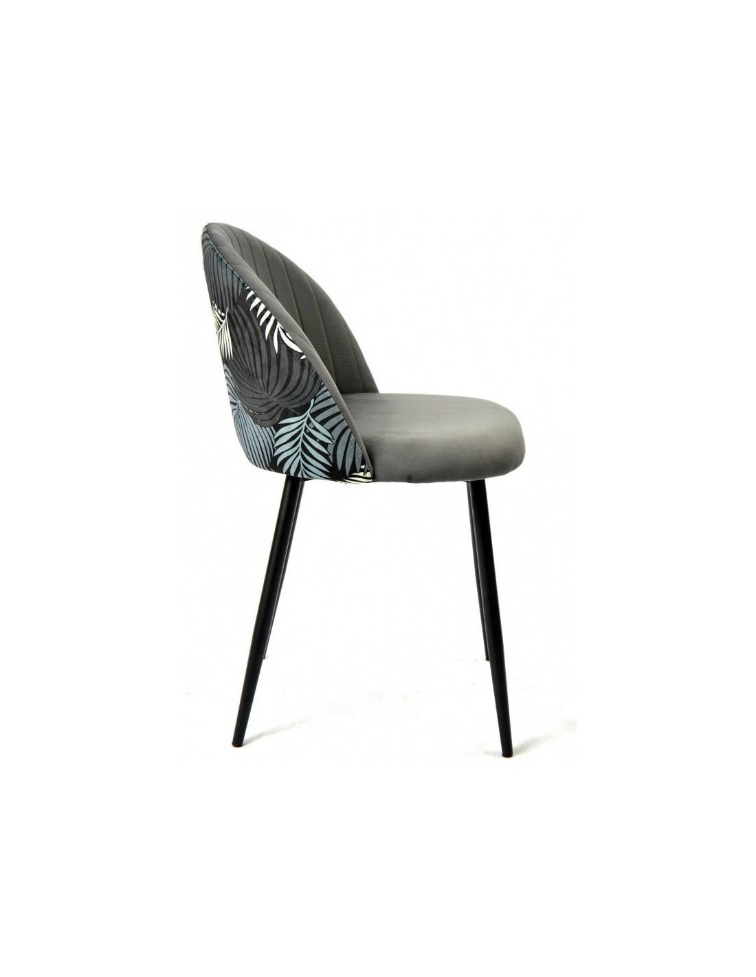 Silla JUNGLE, metal, tapizado velvet gris con trasera floral a juego