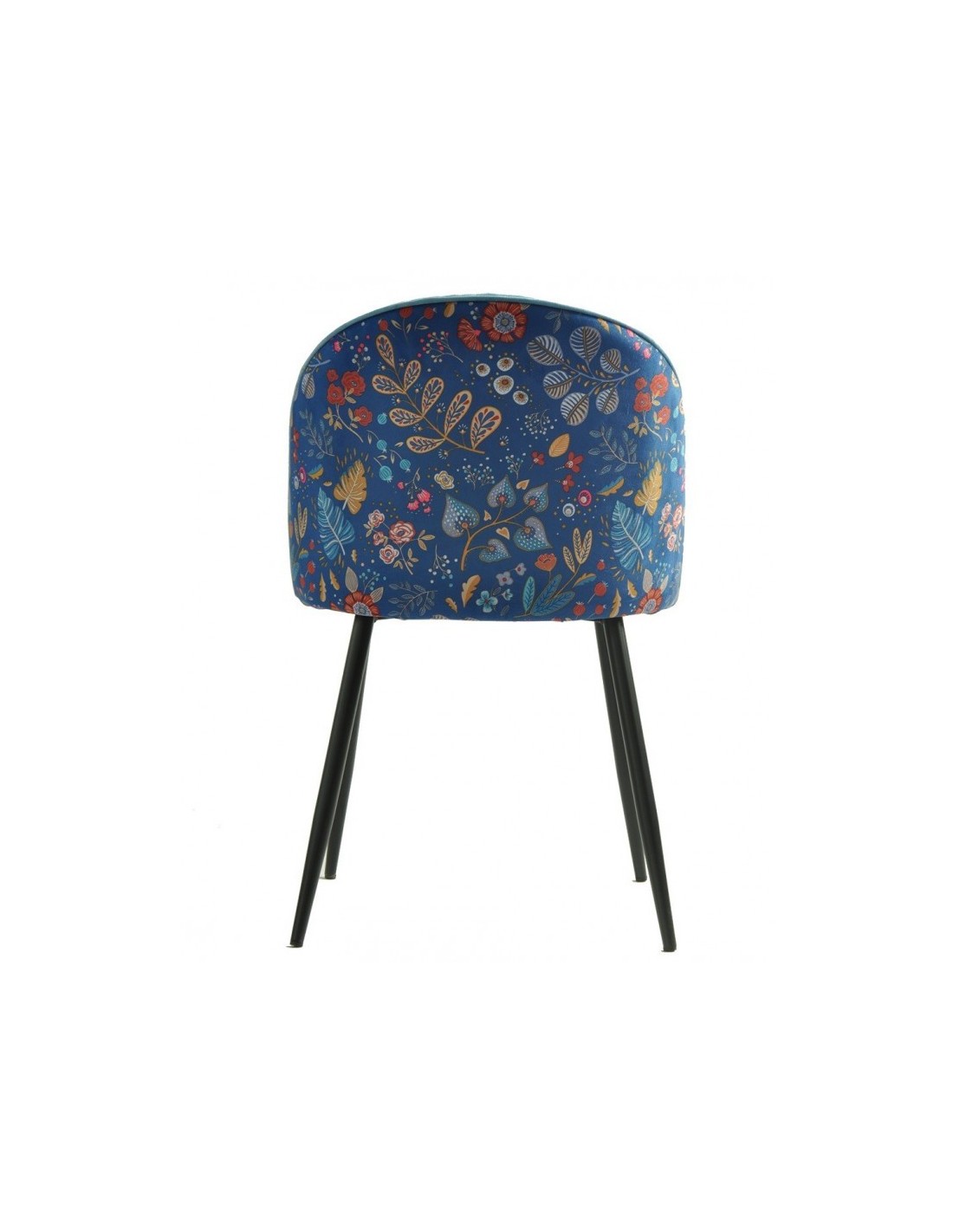 Silla diseño FLORA, tapizado velvet azul con trasera FLORAL
