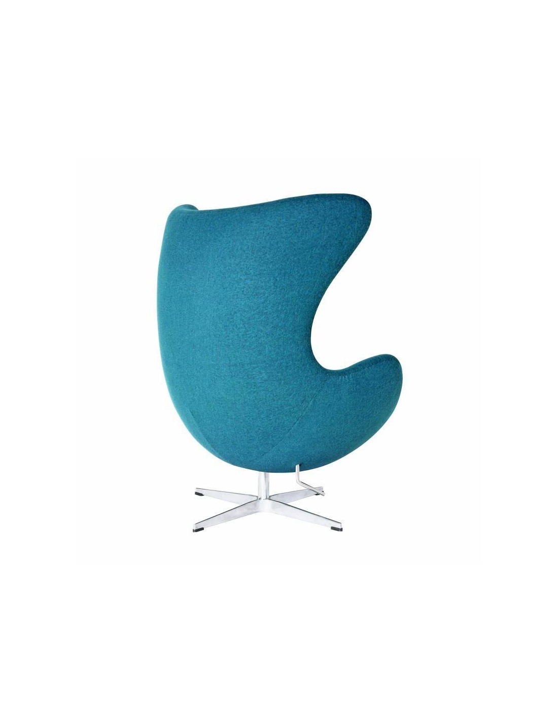 Sillón de diseño. Giratorio. Estructura metálica. Base y columna cromada. Tapizado en tejido cachemir turquesa. Con forma de huevo y con esas grandes “orejas” que envuelve a las personas que se acomodan en él. De líneas tan simples y puras, que sencillamente uno se plantea cómo no pudo inventarse antes.