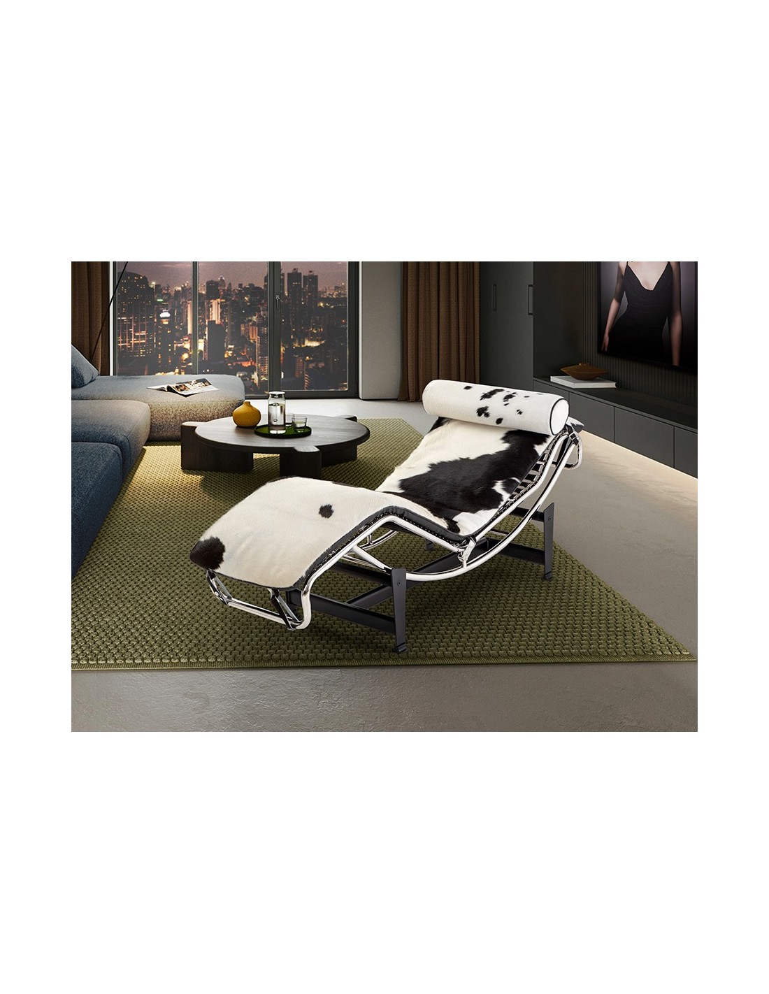 La Chaise Longue LECO en Piel de Vaca Blanco y Negro con Acero Cromado es una pieza de diseño icónico que combina carácter, confort y materiales premium. Su estructura de acero cromado con base negra aporta estabilidad y elegancia, mientras que el asiento basculante tapizado en piel de vaca natural con pelo ofrece una experiencia única. Ideal para salones modernos, con envío peninsular gratuito en España y Portugal.