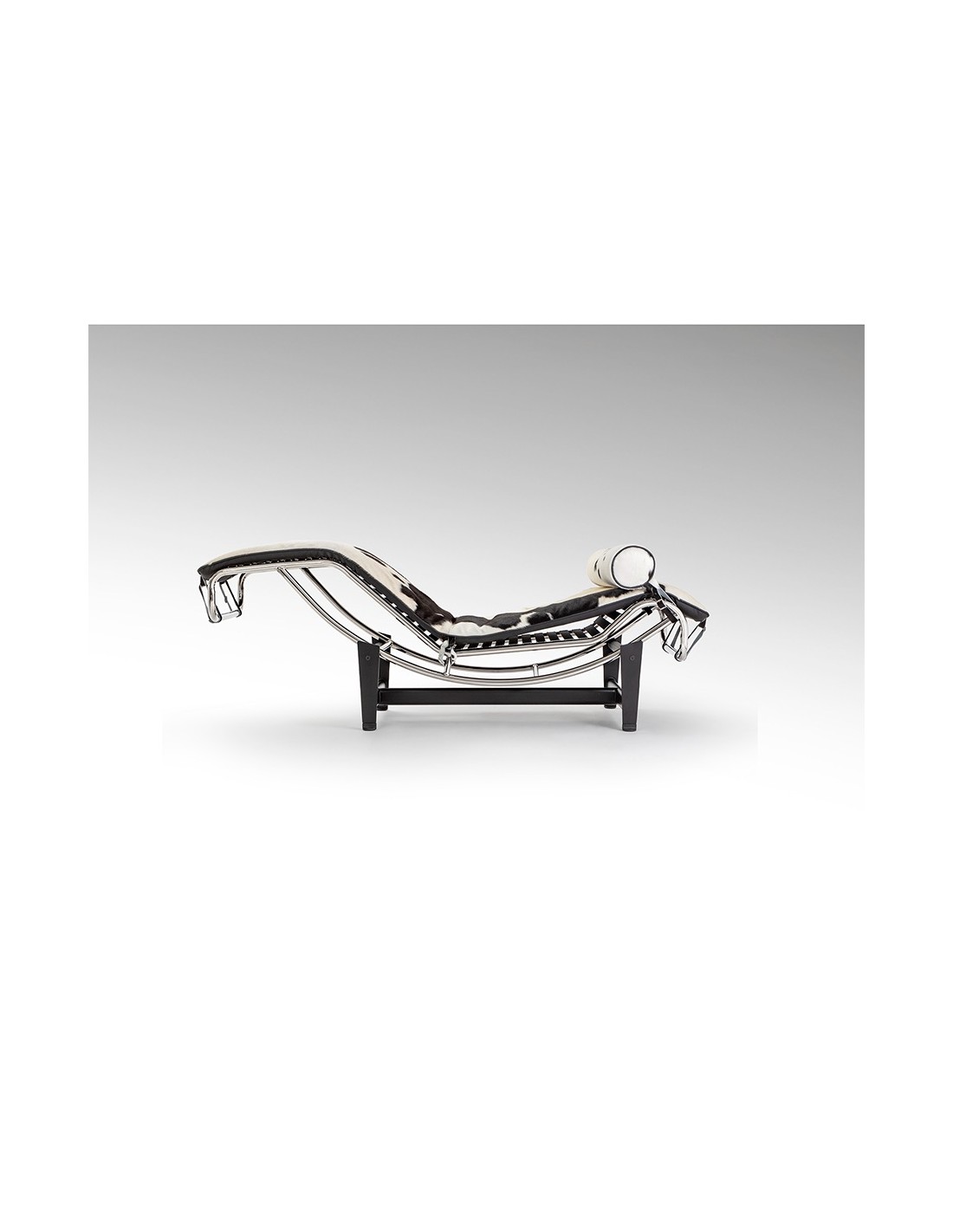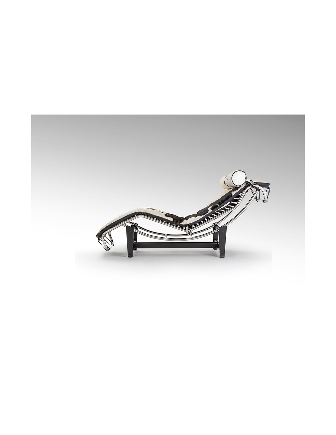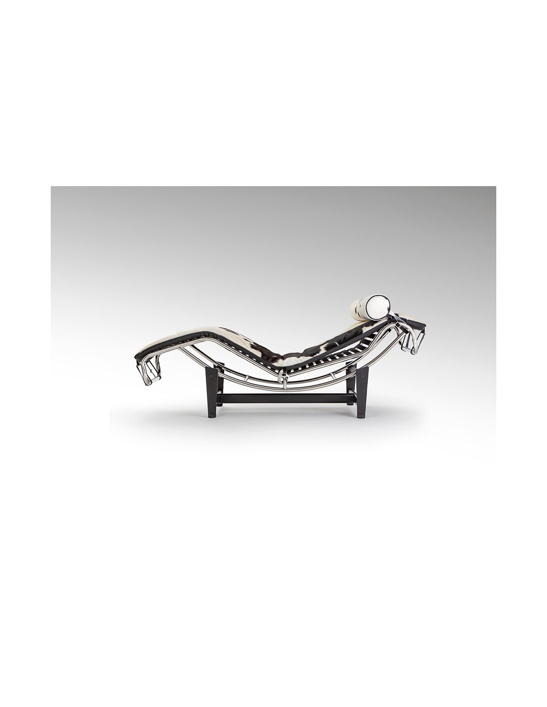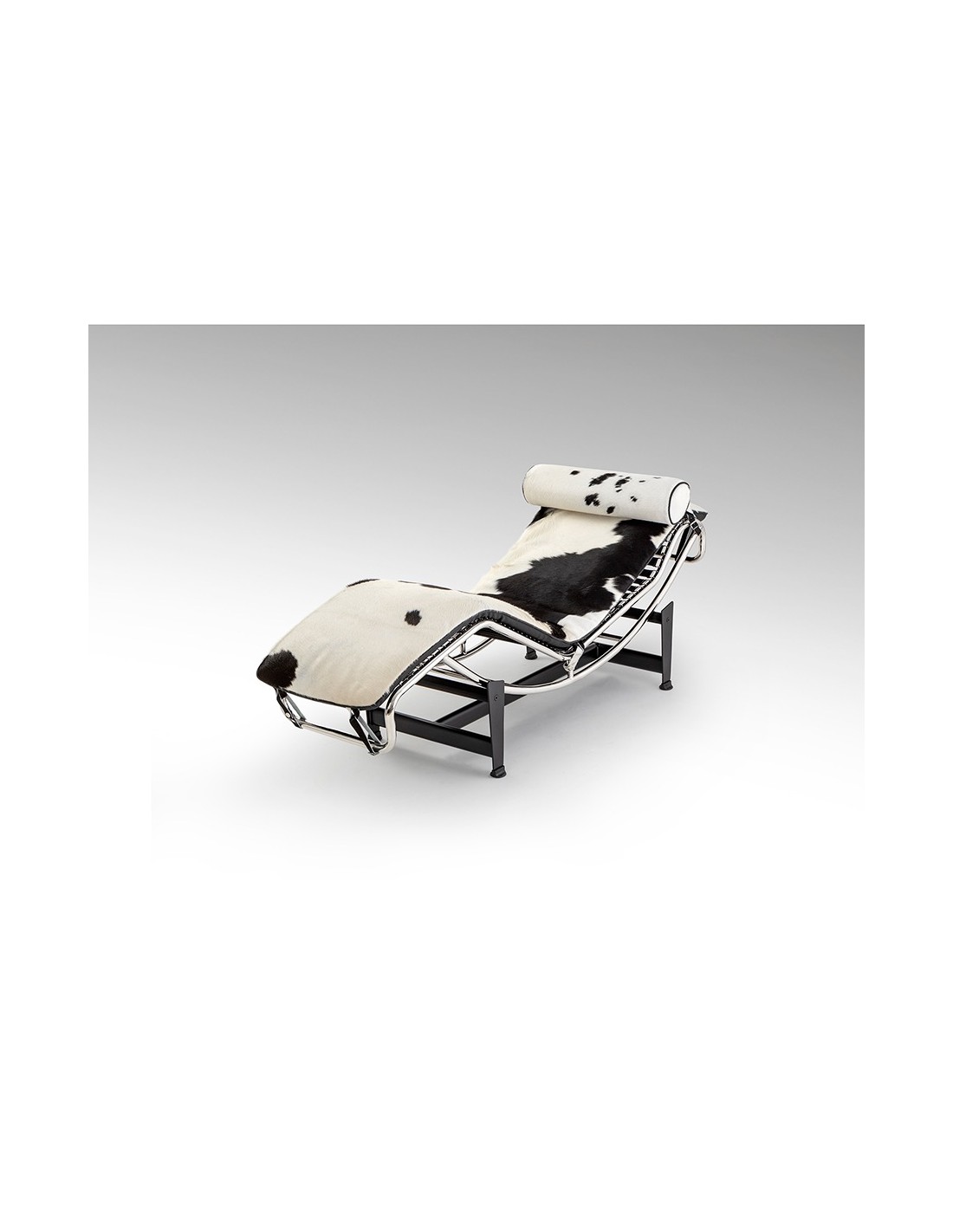 Chaise Longue LECO en Piel de Vaca Blanco Negro y Acero Cromado