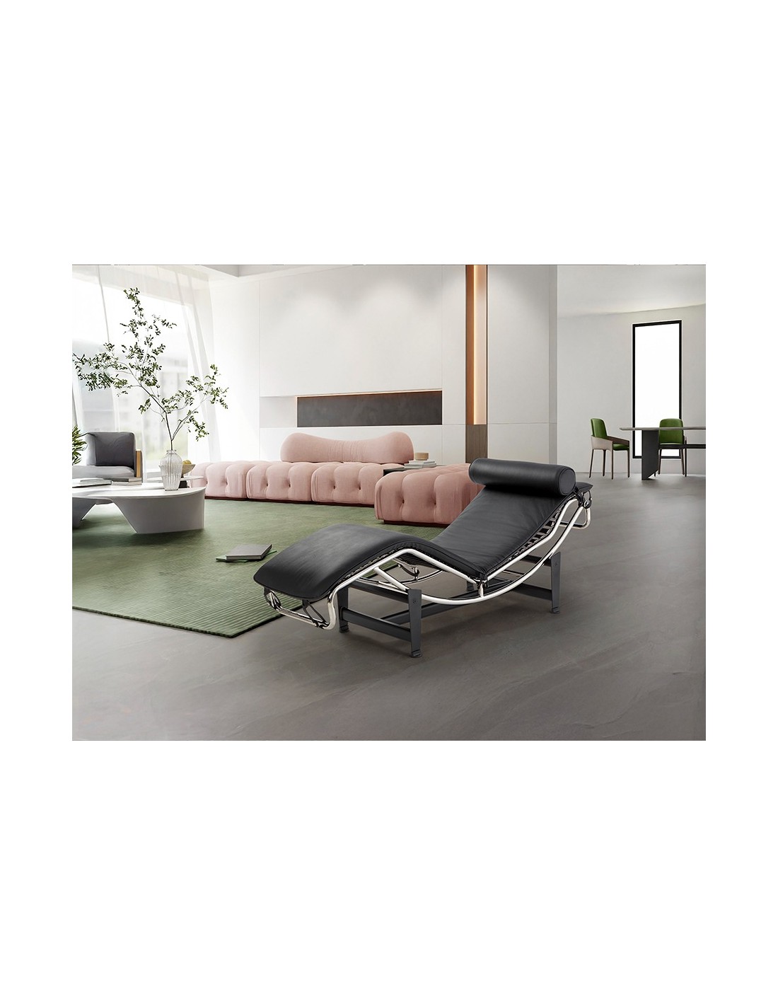 La chaise longue ha sido históricamente un símbolo de relax y sofisticación, desde los interiores clásicos europeos hasta el diseño moderno del siglo XX. El modelo LECO reinterpreta este concepto con una estética contemporánea, donde el acero cromado y la piel negra crean un contraste elegante y atemporal.