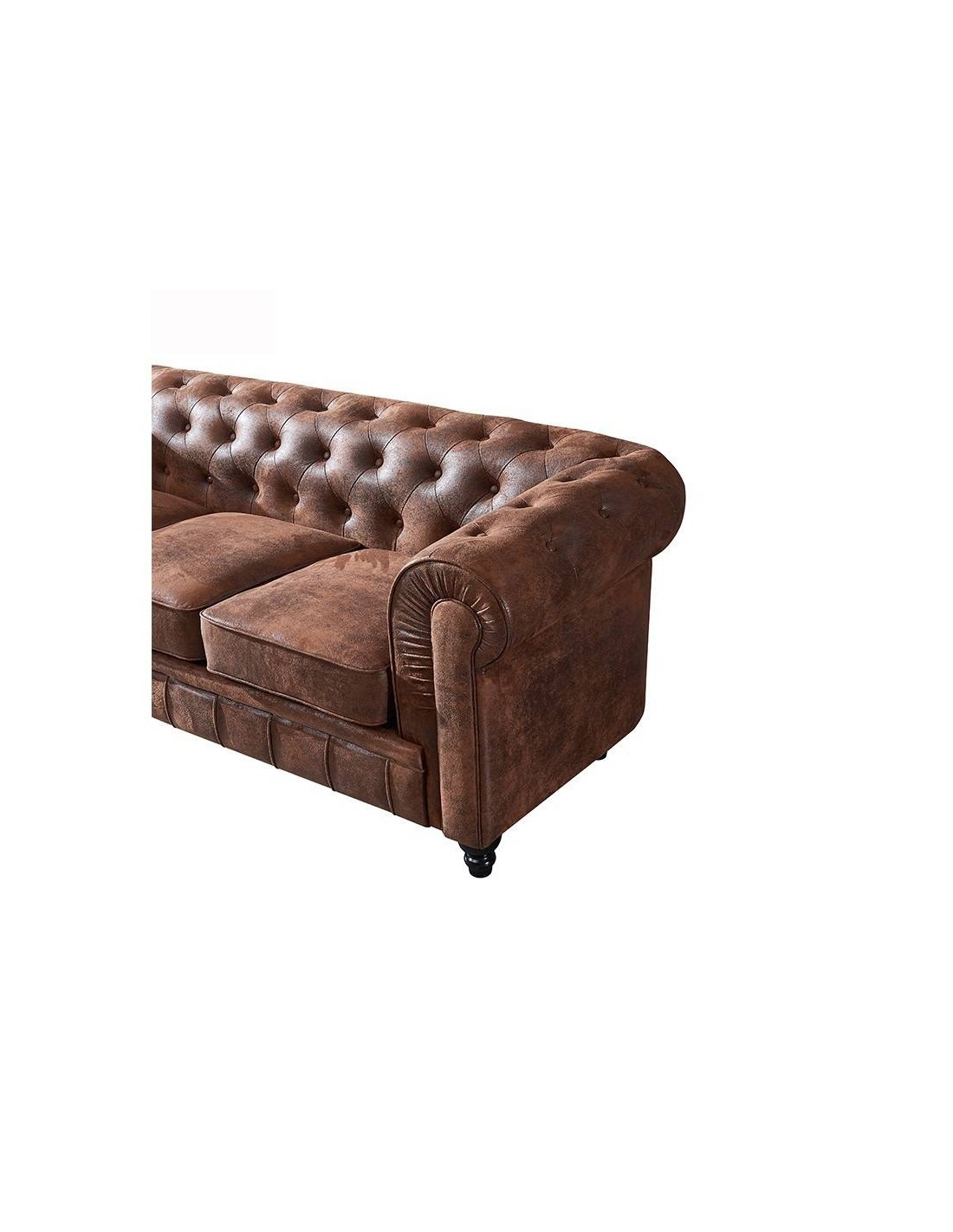 Sofá de diseño vanguardista. Fabricado con sólida estructura de Espuma de poliuretano de gran densidad y tapizado en similpiel cepillada marrón vintage. Déjate envolver por el lujo y la comodidad con nuestro sofá de diseño vanguardista. Diseñado con una sólida estructura de madera, este sofá es un testimonio de la durabilidad y la resistencia sin...