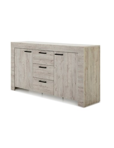 O Aparador MICHIGAN de estilo contemporâneo é composto de duas portas e três gavetas. É fabricado em MDF e acabamento em chapa sintética de cor carvalho branqueado. Seu Design robusto e de linhas retas se encaixam em ambientes modernos ou claro estilo nórdico.