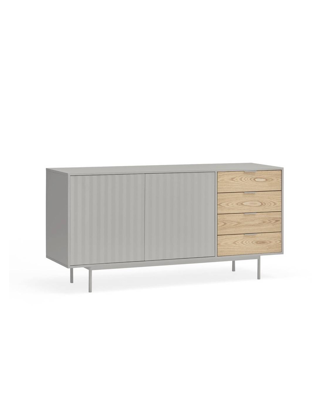 Aparador Teulat SIERRA 160x47, MDF lacado cinza e folheado de carvalho