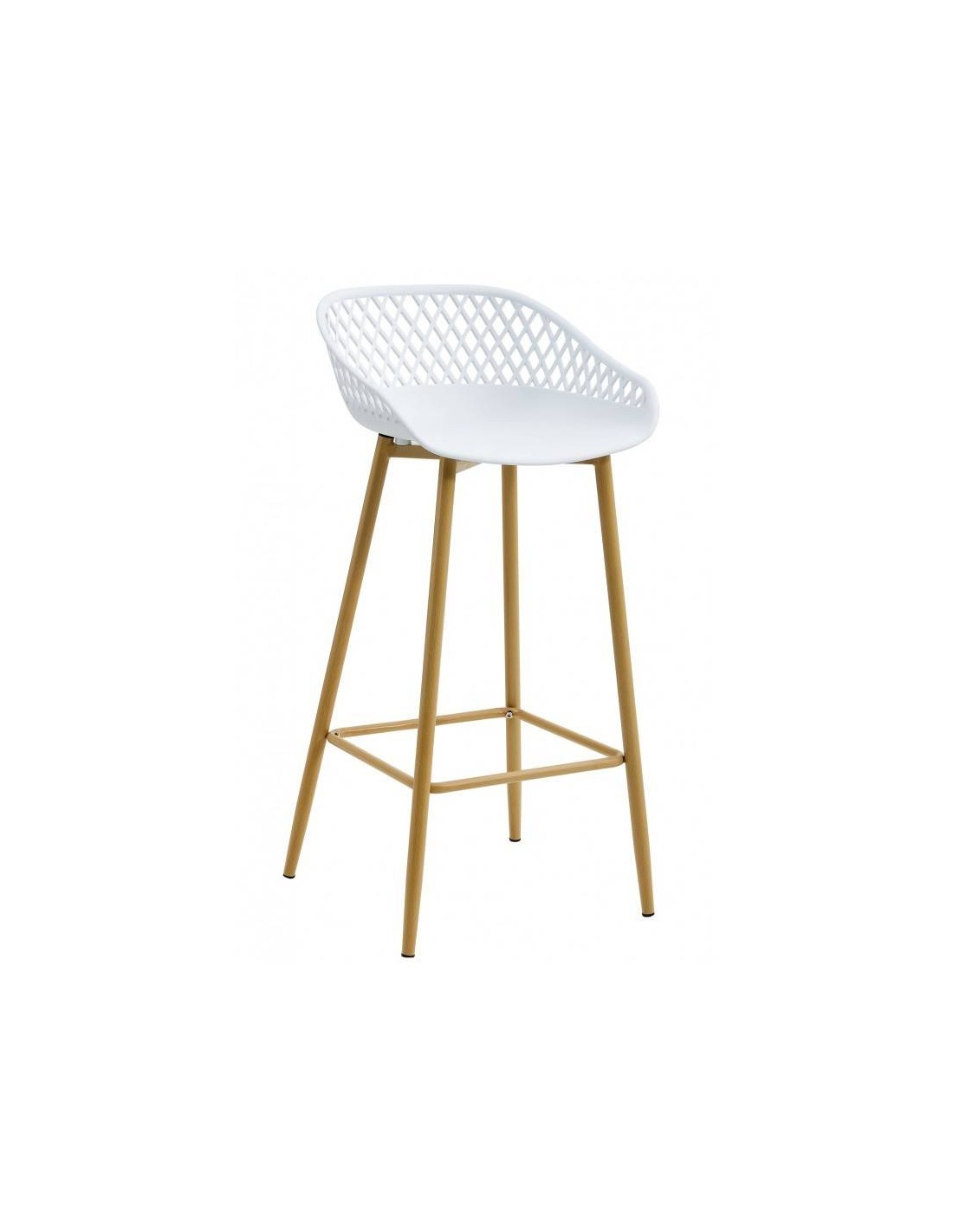 Banco TRAUSS, pernas de metal e assento em polipropileno branco.