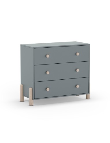 Cómoda ENOLA com 3 gavetas 90 x 80, em MDF verde e pinho cera