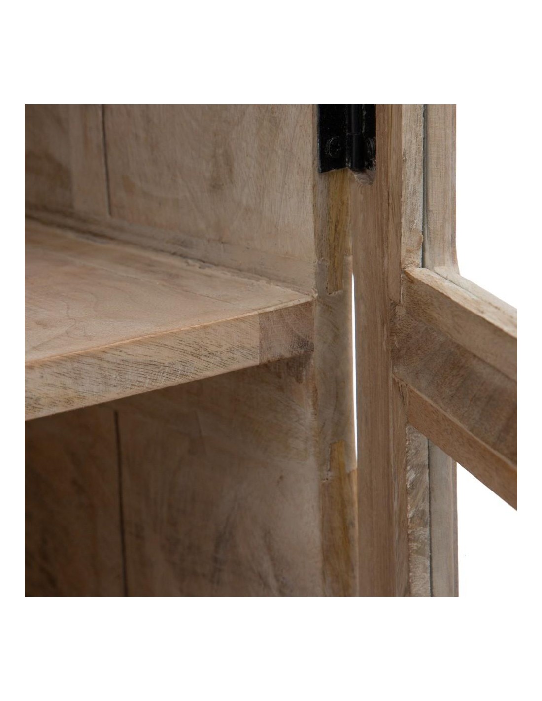 VITRINA BLANCO ROZADO MADERA DE MANGO 120 X 40 X 194 CM Material: Madera de mango, cristal. Medida de las puertas: 60x180cm. Altura de las patas: 10cm. Incluye 4 baldas interiores, altura aprox. 33cm. Peso máximo soportado: unos 50kg en total.