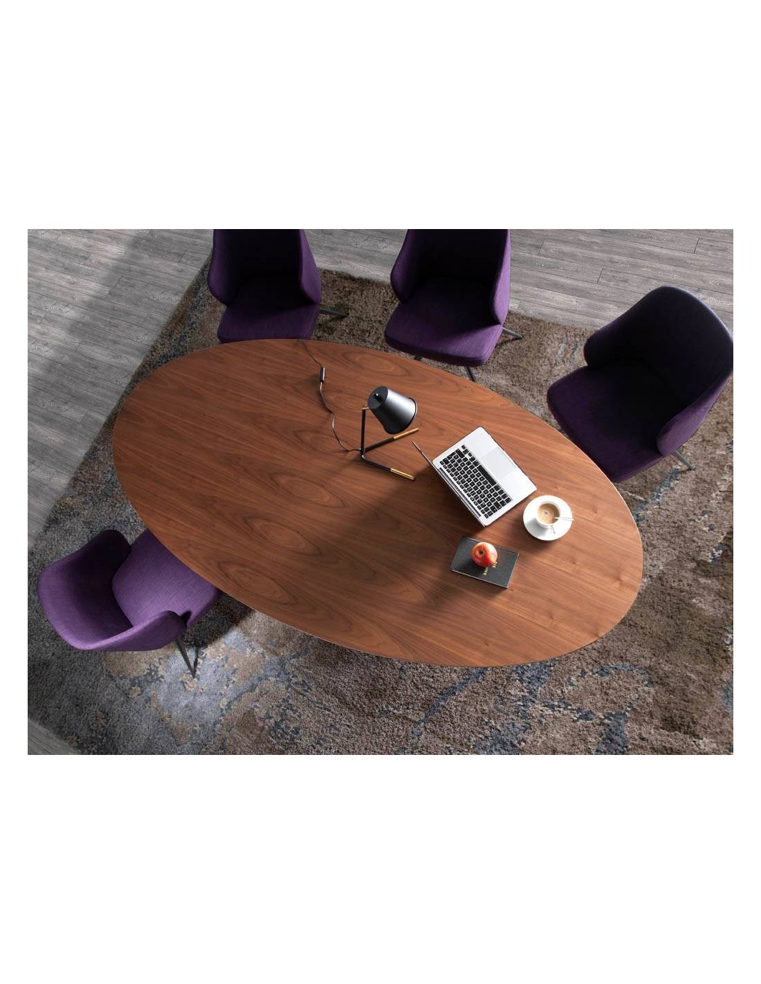 Mesa de jantar fixa com tampa oval de nogueira natural 1013 de Angel Cerdá. Versátil e funcional, seu design permite que ele se encaixe em qualquer sala de estar ou sala de jantar, tornando-se o protagonista do seu espaço. Todas as nossas mesas de jantar são fabricadas com materiais da mais alta qualidade, sendo garantia de mobiliário durável e funcional.