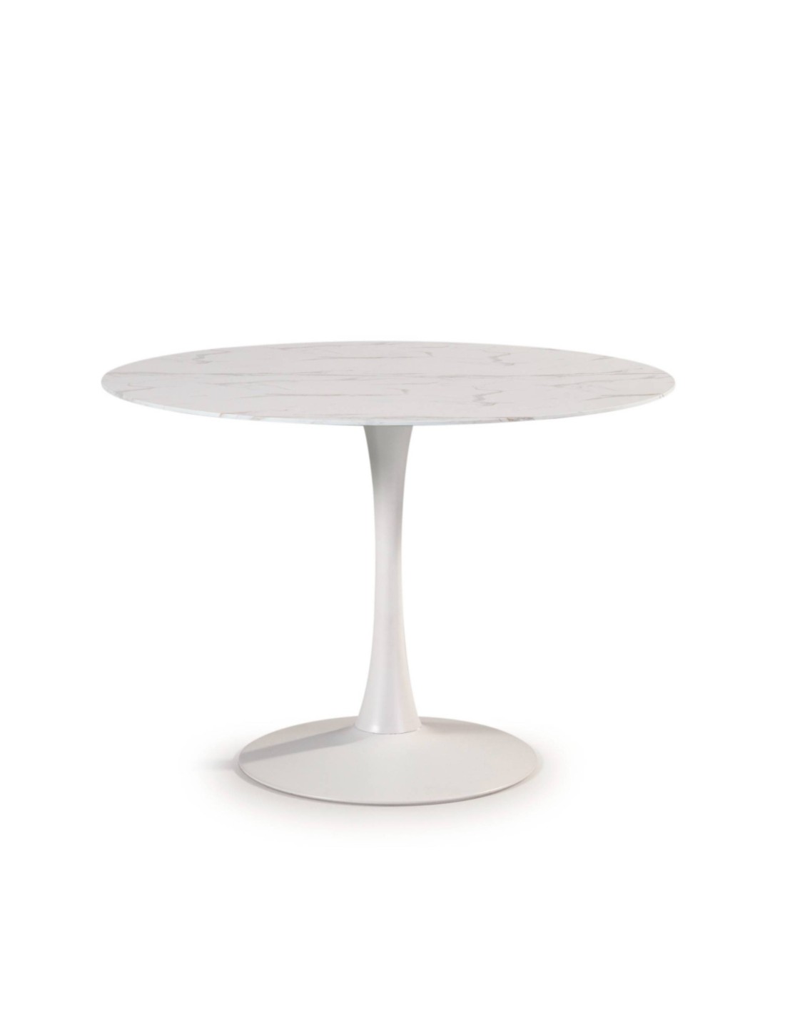 A mesa redonda Ada é um modelo de mesa elegante e funcional que se adapta perfeitamente a vários ambientes, tanto em residências como em escritórios ou espaços comerciais.A mesa tem um diâmetro de 110 cm, o que a torna adequada para acomodar confortavelmente até 4 pessoas. O tampo é feito em cerâmica tipo mármore veteado preto, o que lhe confere um...