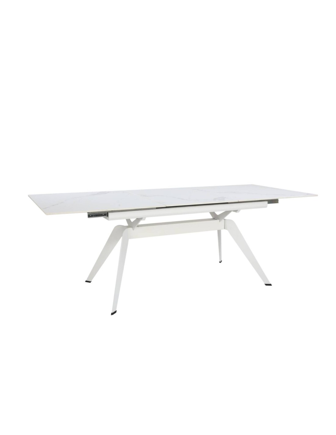 MESA EXTENSÍVEL LULA, 160/220 X 90 CM, tampo em CERÂMICA E PERNAS em metal branco