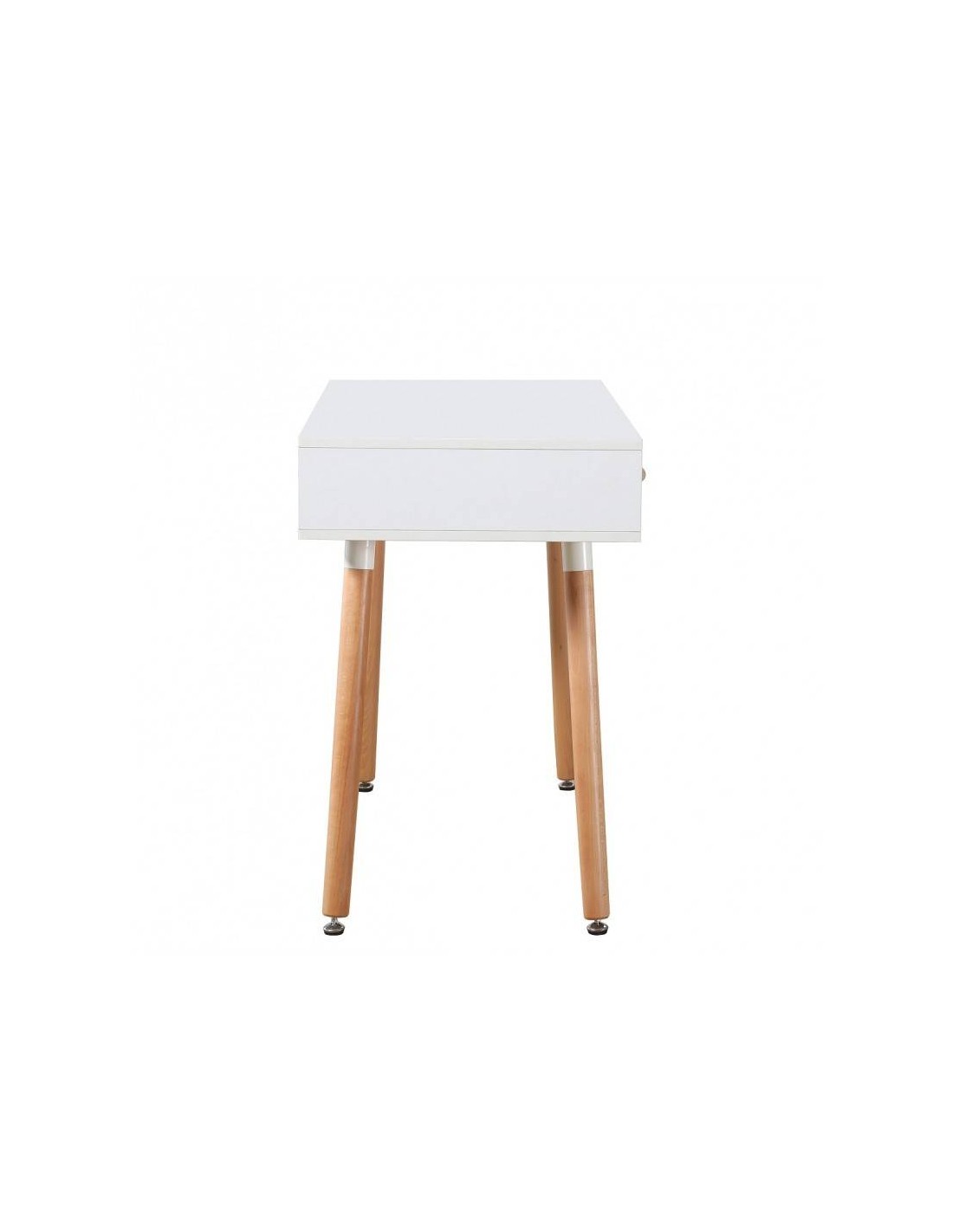 Mesa de estudo de design. Fabricada com madeira bilaminada de cor branca. Gavetas de cor branca com guias metálicas telescópicas e puxadores em faia. Pernas de mesa metálicas com formato cônico e acabamento imitação madeira. Peça que une design e funcionalidade em partes iguais. Além disso, ele se encaixa em todos os tipos de ambientes, desde os mais clássicos até os mais modernos.