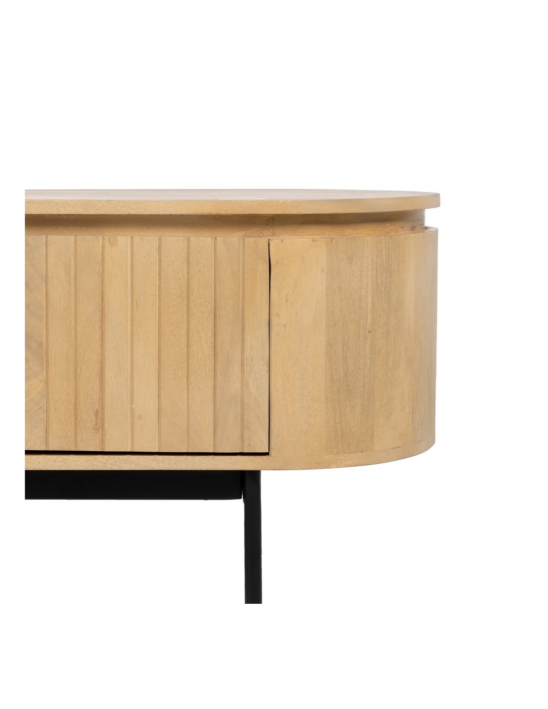Móvel TV LICIA, 2 portas em madeira de mangueira e metal pintado de preto 140 x 40 x 48 cm.