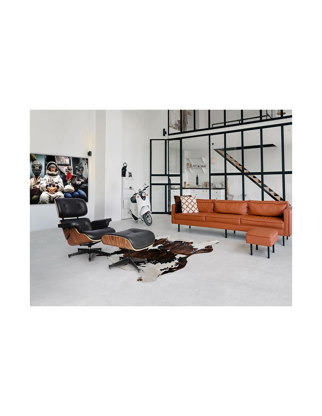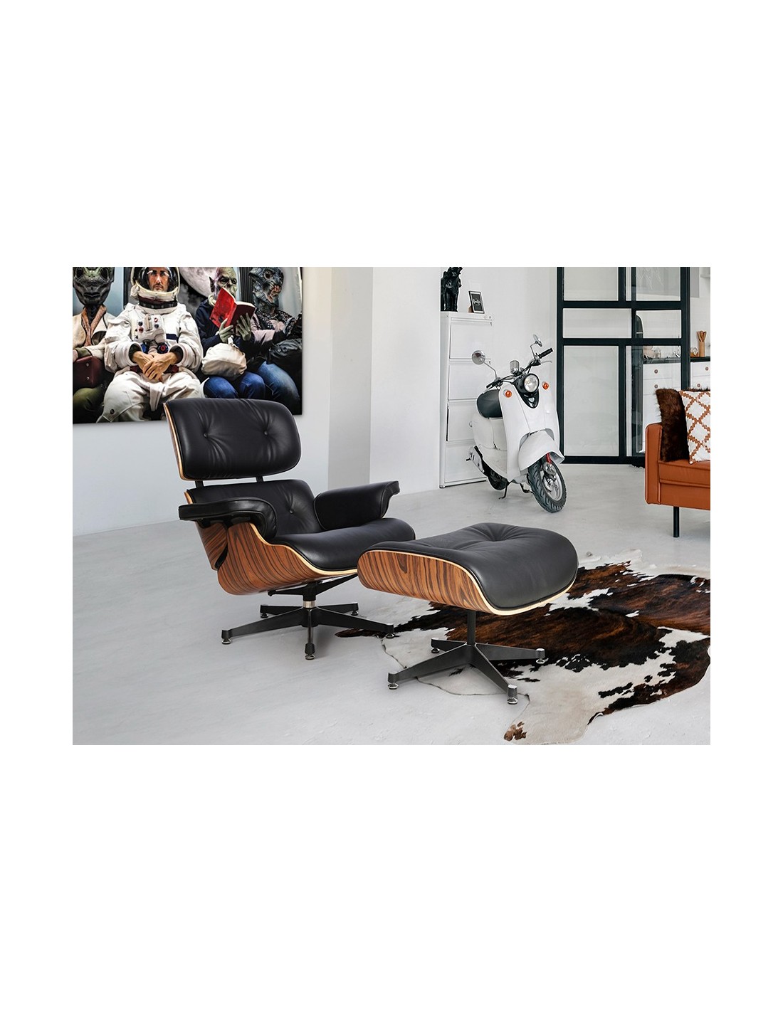 Na CentrolandiaShop, apresentamos a Poltrona Lounge com ottoman, couro, madeira palissandro e base em alumínio com acabamento preto, uma peça icônica que combina conforto luxuoso e estética moderna. Com materiais nobres como couro legítimo, madeira palissandro e estrutura metálica elegante, esta poltrona transforma qualquer ambiente. Ideal para salas, escritórios ou espaços de leitura sofisticados. Aproveite o envio gratuito para Portugal e Espanha continental e um atendimento personalizado que garante uma experiência de compra segura e premium.