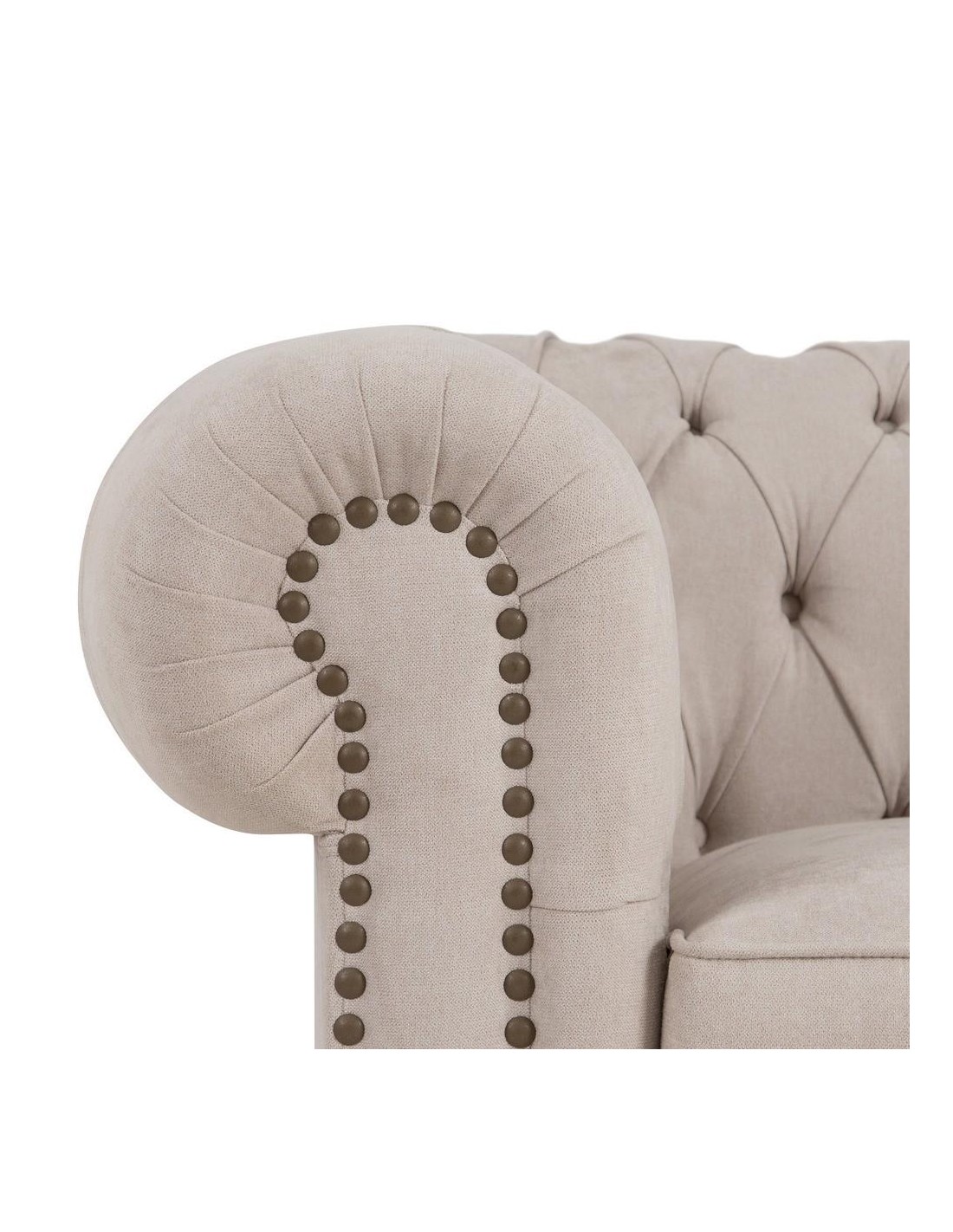 Sofá CHESTER GLAMOUR, 3 lugares, estofamento em veludo bege acinzentado.