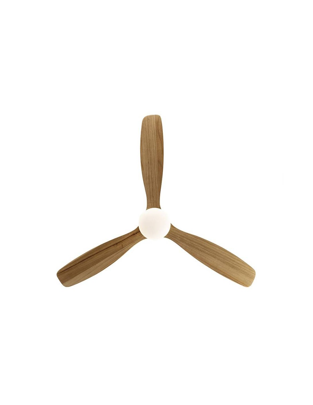 Ventilador de teto com luz LED. Fabricado em metal com acabamento em níquel acetinado e lâminas de madeira com acabamento natural. Difusor de vidro opala. Ventilador com motor DC de 6 velocidades e inversão. LED CCT com 3 tons de temperatura de cor. Timer Inclui controle remoto. LED de 15W, 1.200 lm, 3.000K / 4.000K / 5.000K. Motor DC 22W com 6 velocidades. Ventilador: hélice de 3 pás, Ø132 cm. 6 velocidades (100/120/140/160/180/200 rpm), Fluxo de ar (167/245/348/563/593/618 m3/h). movimento reverso. Rumor: 38 a 45Db.
